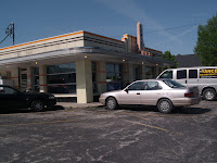 We headed to Sedalia on Thursday for the 2010 Blacksmith Association of Missouri conference. Our first stop was Eddie's drive-in restaurant. They serve breakfast anytime of the day! I'm pretty sure the inside hadn't been updated in decades. They serve a goober burger there. It's a hamburger with peanut butter, tomatoes and lettuce. I passed on that as it was only 11:00 AM, I went for breakfast.