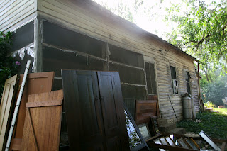 On Saturday we first went to the Farmer's Market and then decided to go to the builders leftover supply store. In one of the far back warehouses we found counter tops, weeds and all. It was a price we couldn't pass up, $30 for two tops.